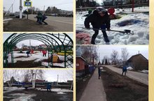 В рамках экологического двухмесячника весенние работы по уборке территории продолжаются. Сегодня убирали мусор и подметали дорожки по территории школы-детского сада и раскидывали снег по улице Солнечная.