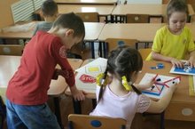 Сегодня в старшей группе была проведена интересная беседа по бесопасности на дороге. Потом детишки поиграли в дидактическую игру "Собери знаки дорожного движения".