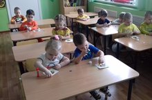 Воспитанники младшей группы сделали интересную аппликацию "Салфетка".