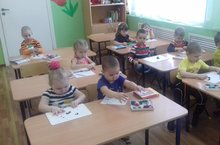 Дети старшой группы делали релаксацию перед занятиями , слушали шум прибоя.