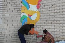 Идет работа по оформлению территории к Новому году.