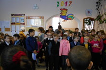 Утренник начался весёлой музыкой. Много разных приключений, чудес и испытаний прошли герои вместе с детьми. На праздник прибыли настоящие Дед Мороз и Снегурочка! Веселье продолжалось! Учащиеся порадовали присутствующих прекрасными песнями, стихами и играми. Дед Мороз и Снегурочка вручили каждому участнику праздника новогодние подарки. Доброго вам здоровья, благополучия! Пусть год Петуха принесет вам удачу в Новом году!