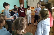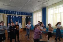 Вначале все участвовали в шуточной разминке,чтобы разогреться.Затем поделились на команды.