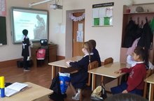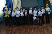 Просмотрели видео с интернет-портала "Сакла ".По итогам Алина Петровна подарила детям подарки и пожелала безопасных дорог.