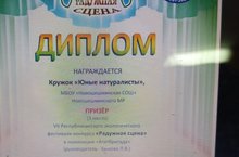 Учащиеся кружка «Юные натуралисты» МБОУ «Новошешминская СОШ» стали призерами Республиканского экологического фестиваля – конкурса сценического творчества школьников «Радужная сцена» в номинации «Агитбригада». Награждены дипломом. Руководитель учитель биологии Быкова Л.В.