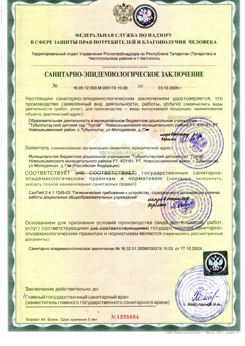 Санитарно-эпидемиологическое заkлючение