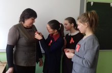 В рамках IV Всероссийской акции "Стоп ВИЧ/СПИД" учащиеся 9 класса раздали красные ленточки, как символ надежды на будущее без СПИДа.
