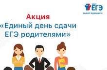По инициативе Федеральной службы по надзору в сфере образования и науки с 07 февраля по 28 февраля 2017 года на территории России пройдет акция «День сдачи ЕГЭ родителями». Основной задачей проведения акции является ознакомление родительской общественности с процедурой проведения единого государственного экзамена.