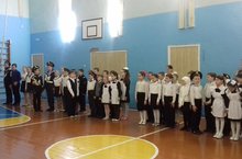 В рамках месячника военно-патриотического воспитания в школе прошёл смотр строя и песни.