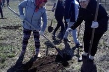 Сотрудники детского сада совместно со школой и сельским советом посадили яблони.