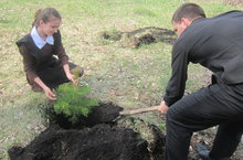 Учащиеся 11 класса посадили первые саженцы на территории будущего школьного Парка выпускников.