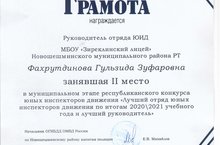 Отряд ЮИД Зиреклинского лицея занял 2 место в муниципальном этапе республиканского конкурса юных инспекторов движения "Лучший отряд юных инспекторов движения по итогам 2020 - 2021 уч.года и лучший руководитель". Молодцы! Поздравляем!