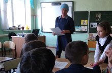 Сегодня учитель русского языка и литературы Мустафина Г.Г. совместно с библиотекарем села Низамиевой К.Г.провели Единый класный час,посвященный 190 летию великого писателя Л.Н.Толстого.Классный час был проведен в виде познавательной игры .Учащиеся начальных классов встретились литературной гостиной ,где они познакомились с жизнью и творчеством Л.Н.Толстого. -