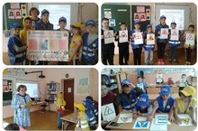 С началом летних каникул важным моментом и ежедневным требованием является соблюдение Правил дорожного движения. Программа "Красный, жёлтый, зелёный" включает изучение, повторение ПДД. Воспитатели обратились к истории возникновения дорожных знаков, их классификации. Попытки ввести правила езды на улицах делались еще когда не было автомобилей, и везде господствовали конные экипажи. В 1730 году вышел первый указ:«Извозчикам и прочим чинам ездить с опасением и смирением». Дети участвовали в викторине. Самым активный был отряд "Радуга"