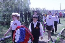 В День Победы были возложены венки к памятнику павшим односельчанам, сделанные руками учащихся школы.