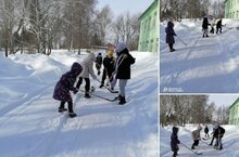 Баталии по хоккею на валенках разыгрались сегодня после уроков в начальных классах. 27.02.2024