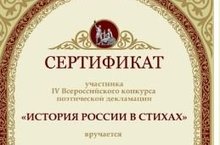 Поздравляем участников Всероссийского конкурса поэтической декламации "История России в стихах" обучающихся 1 и 10 класса.