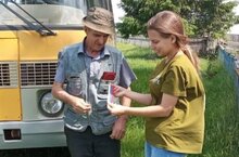 Сегодня в День России старшеклассники ЛТО "Радужный" раздавали ленточки триколор.