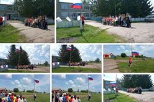 Поднятие флага Российской Федерации в День России прошло в торжественной обстановке. Начальник лагеря Кайзер И. Н. на линейке поздравила всех с праздником и ознакомила с планом работы на день.