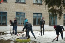 Учащиеся школы и работники школы и детского сада вышли на субботник.