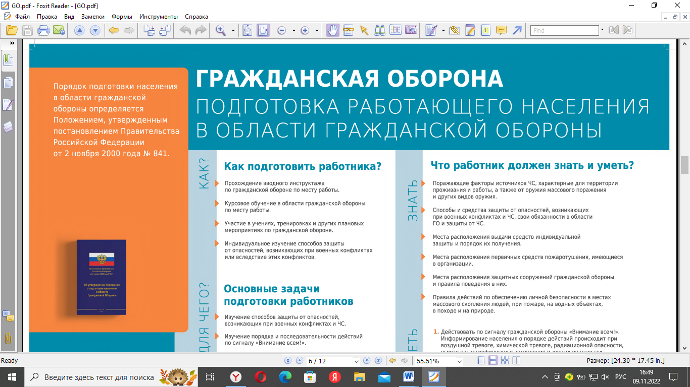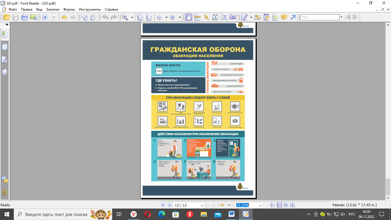 Памятки по гражданской обороне и чрезвычайным ситуациям 09.11.2022