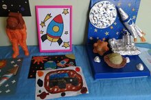 Выставка рисунков посвящённая Дню космонавтики 11.04.2022