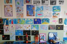 11 апреля в школе проходила выставка рисунков посвящённая Дню космонавтики. На выставке представлены детские рисунки, посвященные космосу, звёздам и полетам человека в космос.