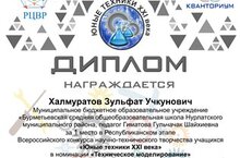 Ученик нашей школы Халмуратов Зульфат стал победителем в Республиканском этапе Всероссийского конкурса научно- технического творчества учащихся "Юные техники XXI века" в номинации "Техническое моделирование". Поздравляем!