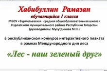 Ученик нашей школы Хабибуллин Рамазан участвовал в республиканском конкурсе интерактивного плаката в рамках Международного дня леса «Лес – наш зеленый друг» Руководитель Мухутдинова М.И.
