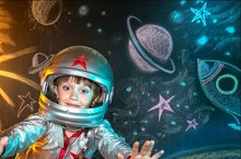 Сөйләм теле үстерү эшчәнлегендә беренче космонавт Ю.А. Гагарин, хатын -кыз космонавтларыбыз белән танышып, Кояш системасы һәм аның тирәли хәрәкәт итүче 9 планета турындагы белемнәрен ныгытсак. Иҗади - сәнгать эшчәнлегендә "Галәм киңлекләрен", планеталарны кисеп ябыштырдык,әвәләдек...