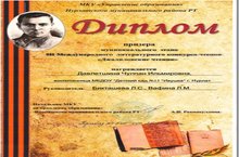 Безнең тәрбияләнүче Дәүләтшина Чулпан "М. Җәлил рус телендә" номинациясендә катнашып, "Җәлил укулары"III Халыкара әдәби шигырь укучылар конкурсының муниципаль этабы призеры булды. Котлыйбыз!