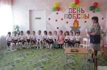 7 мая состоялся утренник, посвященный к 70-летию Великой Победы. Дети пели песни о войне, о победе. Исполнили попурри песен на военную тематику. Рассказывали стихи о войне. Особое внимание детей привлекло инсценирование сюжета "Бабушка с внуком". Дети очень внимательно слушали рассказ бабушки о войне, о том что пришлось пережить детям военных лет, как они все вместе приближали победу.