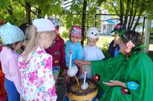 На праздник пришел доктор Айболит. Он вместе с детьми играл в игры, делал зарядку, спасал лягушек, загадывал загадки.