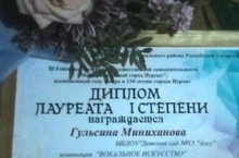 23нче май районның 3нче үзәнчәннәр концерты булып узды. Безнең хезмәттәшебез тәрбияче Миниханова Г.К. 1 дәрәҗәдәге лауреат дипломы белән бүләкләнде.Котлыйбыз!