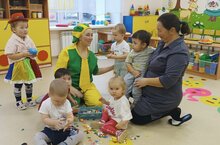 Беренче кечкенәләр төркеме балалары, әниләре ярдәме белән тегелгән курчаклар киеп "Шалкан" әкиятен бик теләп уйнап карадылар.