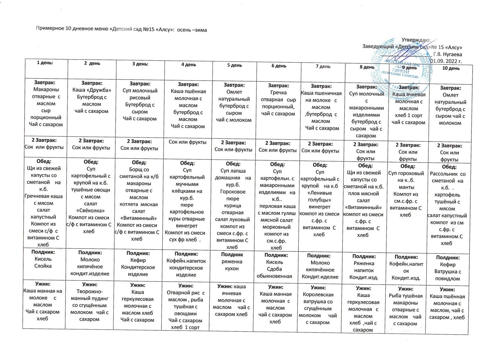 Примерное 10 дневное меню "Детский сад №15 "Алсу": осень-зима на 03.02.2023