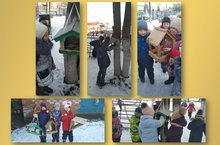 Мәктәпкә әзерлек төркеме балалары ата-аналар белән кошлар өчен җимлекләр ясадылар һәм аларны агачларга элделәр.