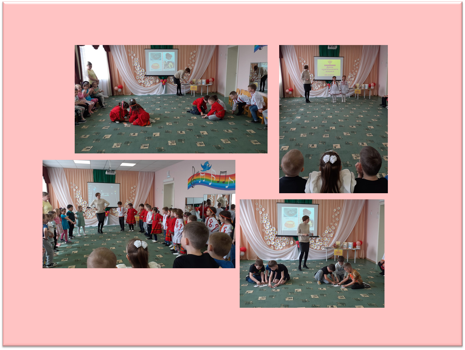 Бүген балалар бакчасында балалар китапханәсе белән берлектә чуваш теле көненә багышланган чара узды. Балалар чуваш халкы тормышыннан кызыклы фактлар, чуваш мәгърифәтчесе И.Я. Яковлев турында белделәр, әдәби күргәзмә белән таныштылар, «Телке биюе» чуаш халык әкиятен укыдылар. Балалар чуваш телендә шигырьләр әзерләделәр, уеннар уйнадылар, биеделәр. Чара бик кызыклы һәм мавыктыргыч үтте.