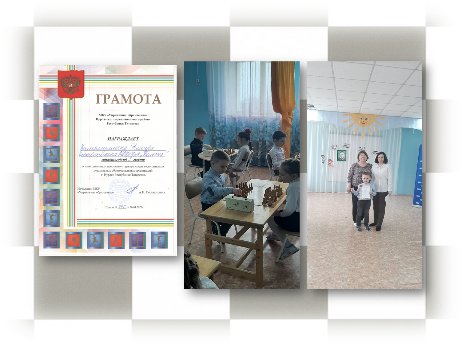 Бүген «Үзәк - балалар бакчасы» базасында Нурлат шәһәренең мәктәпкәчә учреждениеләрендә тәрбияләнүчеләр арасында шәһәр шахмат турниры узды. Безнең балалар бакчасын Кәлимуллин Динар һәм Сидоров Арсений тәкъдим итте. Кәлимуллин Динар 3 урын алды. Котлыйбыз!!!