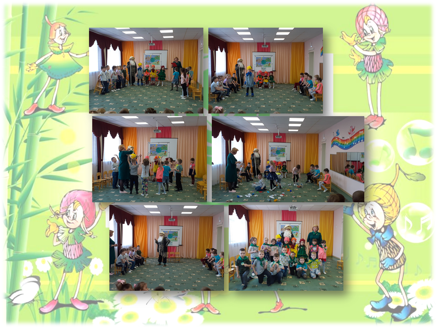 Өлкән төркем тәрбияләнүчеләре «Посвящение в «Эколята-дошколята» темасына багышланган чарада катнаштылар. Эколята - Акылкай, Шаян, Тыныч һәм Чыршыкай балаларга табигать турында күп кызыклы нәрсәләр сөйләделәр, аның белән дуслашырга, табигатьне ничек сакларга, хөрмәт итәргә һәм аның турында кайгыртырга өйрәттеләр. Балалар Урманчы белән бергә эколята биремнәрен үтәделәр, табышмакларга җавап бирделәр, урманда үз-үзеңне тоту кагыйдәләре турында сөйләделәр, чүп-чарны аердылар. Бәйрәм ахырында балалар эколята антын әйттеләр, ә Урманчы кечкенә эколята-мәктәпкәчә яшьтәге балаларга эколята логотибы төшерелгән значоклар тапшырды, аларга яшел галстуклар бәйләде һәм тантаналы рәвештә «Эколят-мәктәпкәчә яшьтәге балалар»нә багышлады.