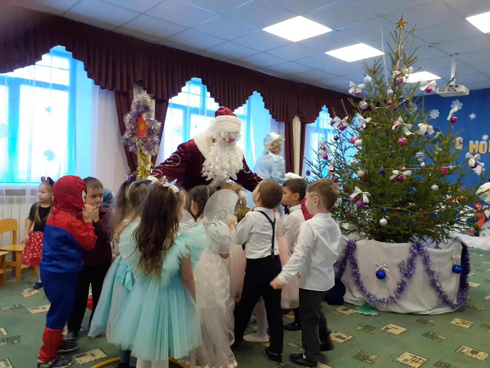 Опубликовано: 29.12.2022Новый Год - это самый волшебный, веселый праздник, которого дети ждут, веря в сказку и чудо… В детском саду прошли новогодние утренники. Красиво украшенный зал, нарядная елка, подарки, Дед Мороз и Снегурочка, Маша и Медведь и множество других сказочных персонажей ожидали детей дошкольного учреждения. Ребята погрузились в мир чудес, приключений, невероятных превращений и сюрпризов. Дошколята танцевали, пели песни, читали стихотворения, водили хороводы, с удовольствием участвовали в играх и конкурсах. Дети получили массу положительных эмоций и долгожданные подарки из рук Деда Мороза. Фото1 Фото2 Фото3 Фото4 Фото5