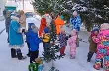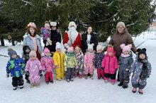 В празднично нарядном зале малышей 1-й младшей группы ожидала живая красавица елка. Дети спели для елочки песню. Гости праздника мишка, зайка и Снегурочка нашли под елкой свои потерянные рукавички. Они весело играли и танцевали с детьми. Малыши рассказывали стихи, были в восторге от игры в снежки, которые передал для них Дед Мороз. В конце праздника малышей ожидал сюрприз. Снегурочка нашла под елкой большую рукавичку Дедушки Мороза. В ней лежали вкусные подарки для детей. Все малыши остались довольны праздником.