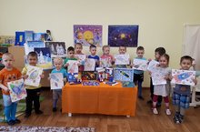 С 12 апреля по 16 апреля проходила тематическая неделя, посвященная 60-летию полета человека в космос. Расширение детского кругозора, раскрытие сути такого события способствует развитию патриотических чувств дошкольников, позволяет ребятам осознать личную причастность к жизни Родины./ 12 апрельдән 16 апрельгә кадәр кеше космоска очуына 60 ел тулуга багышланган тематик атналык узды. Балалар күзаллауларын киңәйтү, мондый вакыйганың асылын ачу мәктәпкәчә яшьтәге балаларның патриотик хисләрен үстерүгә ярдәм итә, балаларга Туган ил тормышына шәхси катнашы барлыгын аңларга мөмкинлек бирә.