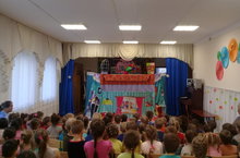 Сегодня наш детский сад посетил театр кукол "Алина" города Альметьевск с показом музыкальной постановки из серии сказок «Удивительные приключения Малыша, Тобика и попугая Кеши». Действие спектакля с первой минуты захватило ребят и перенесло их в сказочный увлекательный мир./ Бүген безнең балалар бакчасында Әлмәт шәһәренең "Алинә" курчак театрында «Сабыйның, Тобик һәм попугай Кешаның искиткеч маҗаралары»әкият сериясеннән музыкаль спектакль күрсәтелде. Спектакль беренче минуттан ук балаларны үзенә тартып алды һәм аларны әкият дөньясына күчерде.