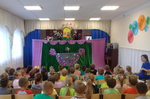 19 сентября наш детский сад посетил Нижнекамский кукольный театр «Веселая команда». Они выступили перед ребятами с поучительным выступлением «Лесная сказка». Герои сказки рассказали ребятам, как нужно вести себя на природе. А так же провели со зрителями игры на внимание. Дети остались довольны представлением./ 19 сентябрь көнне безнең балалар бакчасында Түбән Каманың «Күңелле команда» курчак театры кунакта булды. Алар балалар алдында «Лесная сказка» гыйбрәтле чыгышы белән чыгыш ясадылар. Әкият геройлары балаларга табигатьтә үзеңне ничек тотарга кирәклеге турында сөйләделәр. Шулай ук тамашачылар белән уеннар да уздырылды. Балалар бу тамашадан бик канәгать калдылар.