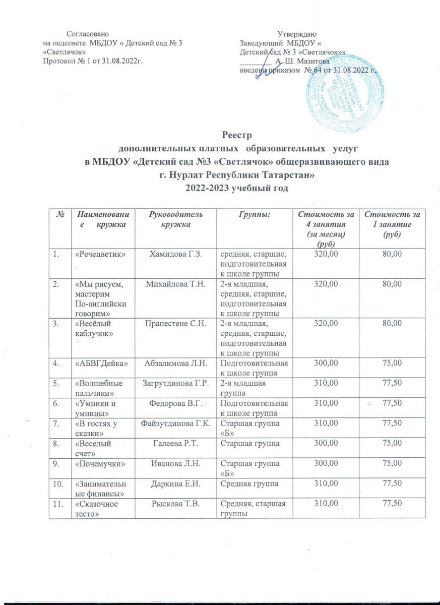 Прейскурант по дополнительным услугам на 2022-2023 учебный год