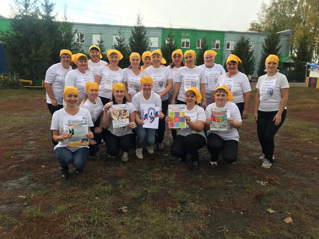 Опубликовано: 30.09.201927 сентября ранним утром на территории нашего детского сада прошло масштабное мероприятие «Зарядись энергией Профсоюза!», был организован флешмоб с участием коллектива ДОУ. Сотрудники активно приняли участие в реализации мероприятия, которое направлено на дальнейшее повышение жизненного тонуса и оптимизма членов профсоюза образовательного учреждения./ 27 нче сентябрь иртәсендә безнең балалар бакчасы территориясендә зур күләмле «Һөнәр берлегенең энергиясе белән тулылан!» балалар бакчасы коллективы катнашында флешмоб оештырылды. Хезмәткәрләр мәгариф учреждениесе профсоюз әгъзаларының тормыш тонусын һәм оптимизмын арттыруга юнәлдерелгән чараны тормышка ашыруда актив катнаштылар.