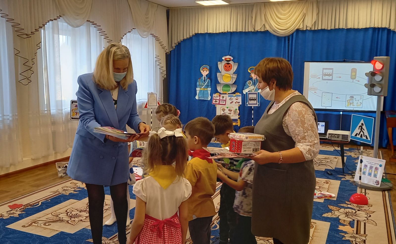 Опубликовано: 13.11.2020Сегодня в рамках профилактики детского дорожно-транспортного травматизма в нашем детском саду прошла квест-игра «Знаки дорожного движения» при участии начальника отдела ГБУ "Безопасность дорожного движения" Гималтдиновой Гульфии Харисовны. Воспитанники в игровой форме закрепили знания о правилах дорожного движения и подготовили интересный флэш-моб. В завершении мероприятия Гульфия Харисовна вручила детям памятные подарки./ Бүген балалар юл-транспорт травматизмын кисәтү кысаларында безнең балалар бакчасында «Юл хәрәкәте куркынычсызлыгы» ДБУ бүлеге начальнигы Гималтдинова Гөлфия Харис кызы катнашында "юл хәрәкәте билгеләре" дигән квест-уен узды. Балалар уен формасында юл йөрү кагыйдәләре турында белемнәрен ныгыттылар һәм кызыклы флэш-моб әзерләделәр. Чара ахырында Гөлфия Харис кызы балаларга истәлекле бүләкләр тапшырды.