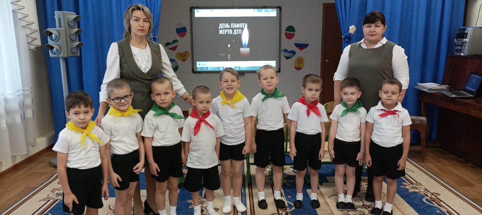 Опубликовано: 16.11.2022Сегодня в нашем саду прошла акция по профилактике ДТП, приуроченная к Всемирному дню памяти жертв дорожно- транспортных происшествий./Бүген безнең бакчада юл - транспорт һәлакәтләре корбаннарын искә алу көненә багышланган юл-транспорт һәлакәтләрен профилактикалау буенча акция узды.