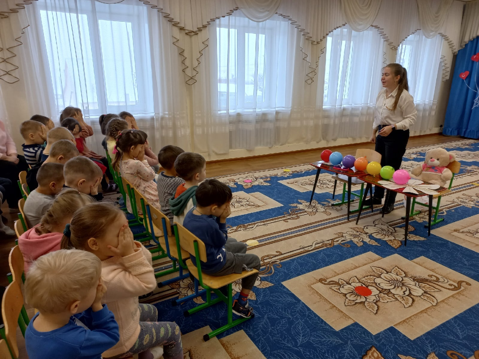 Опубликовано: 22.11.2022В рамках совместной работы детского сада и СОШ N2 с детьми старших и подготовительной к школе групп учитель английского языка Романова Екатерина Сергеевна провела занятие "Cоlors"./ Өлкәннәр һәм мәктәпкә әзерлек төркемнәре балалары белән балалар бакчасы һәм N2 урта мәктәбенең уртак эше кысаларында Инглиз теле укытучысы Романова Роатерина Сергеевна "colors"дәресен үткәрде.